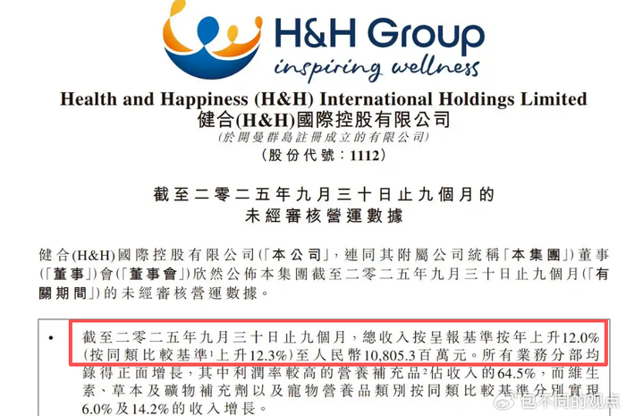 健合集团的三季报,正是这种行业趋势的生动印证。从核心数据来看,健合集团前三季度实现营收108.05亿元,同比增长12.3%,在行业整体调整期,这样的增速堪称逆势突围。