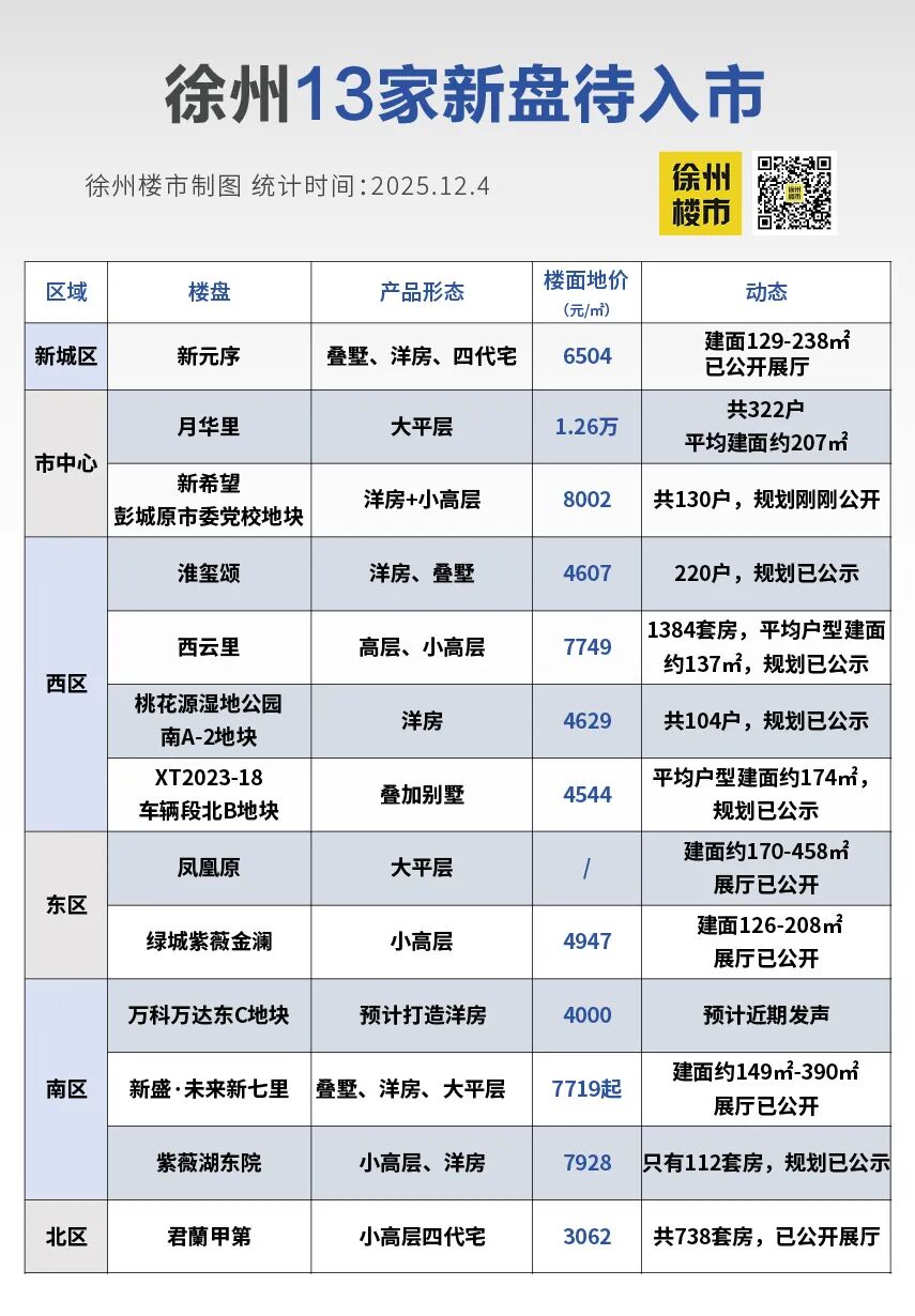 据不完全统计,接下来徐州有13家新盘要入市,将为徐州新房市场注入新的血液。
