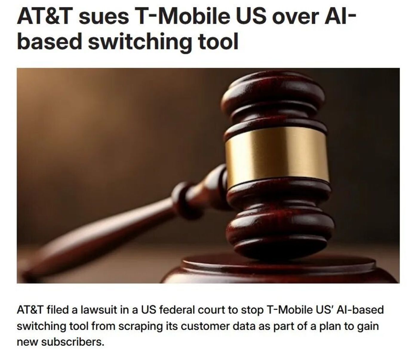 11月30日,AT&T正式向美国联邦法院提起针对T-Mobile的诉讼,请求法官发布临时限制令,禁止T-Mobile 使用AI工具抓取其客户数据。