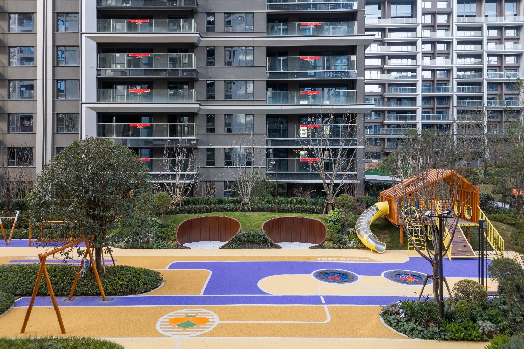 顺应原生地势高差,悦著央璟匠心打造城市稀有的台地式景观园林。这并非简单的绿化堆砌,而是一幅以“一轴六境”为骨架的立体生活画卷。园林不再是静态的观赏对象,而是可游、可玩、可感的沉浸式生活剧场。“一轴”引领归家动线,串联起六大主题景观意境,步移景异间,每一次转角都遇见惊喜。五大主题花园与邻里共享空间巧妙融合,将阳光、清风、绿植与鲜氧尽数留白于日常;特别打造的三大主题分布式儿童乐园,以全龄段、益智化设计守护童心好奇,让孩子们的欢笑成为社区最动听的背景音,让自然与陪伴成为生活的常态。