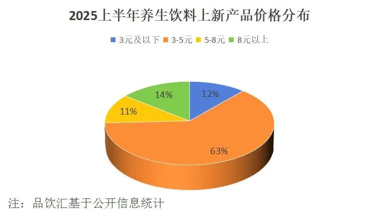品饮汇针对上半年上市的85款中式养生饮料新品价格统计(采集方式:同一淘宝账号实际付款价格)显示,新品平均售价约为5元/瓶,较2024年约5.7元/瓶的均价下降了12%。郑州一位经销商更向媒体透露:“随着‘第二瓶1元’等促销风暴席卷,养生饮料实际成交价已跌至3-5.5元/瓶,降幅超40%。”