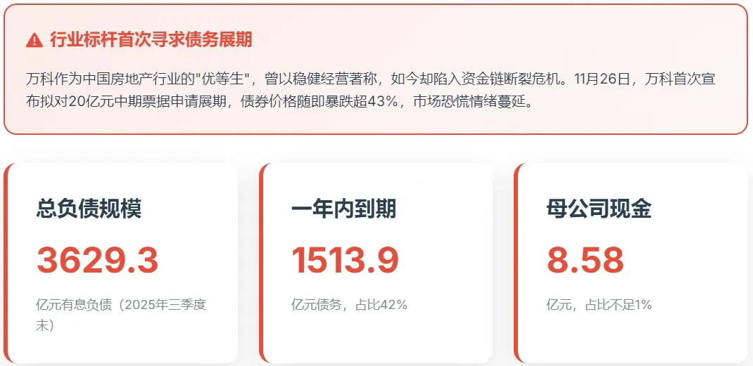 作为曾经的行业标杆,拥有国资背书的“优等生”—— 万科 ,股价腰斩,债券价格雪崩。更让市场感到窒息的,是一则看似不起眼的公告: