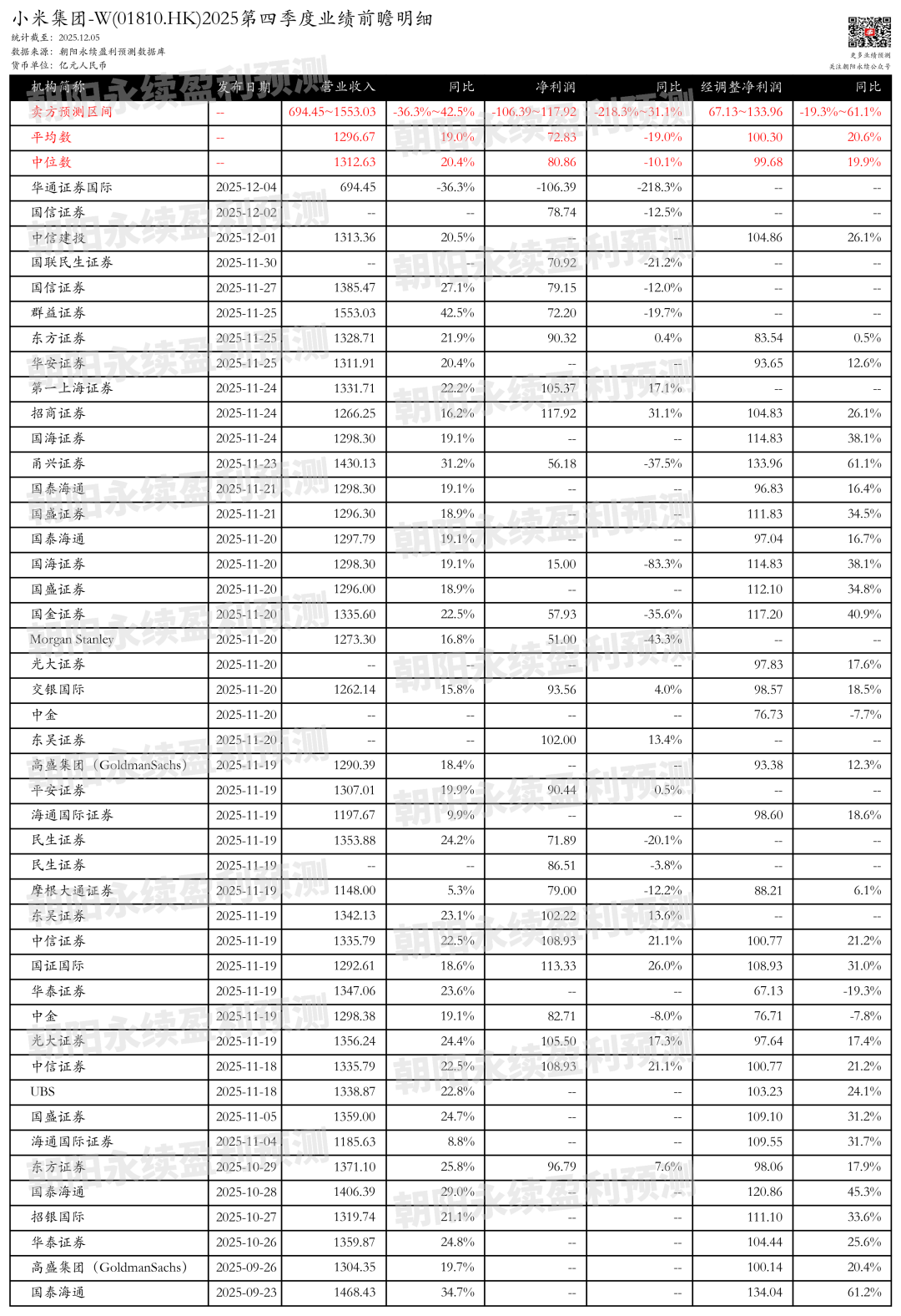 季度业绩前瞻 | 小米集团-W:汽车业务盈利,预测Q4一致预期营收694.45~1553.03亿元,同比-36.3%~42.5%