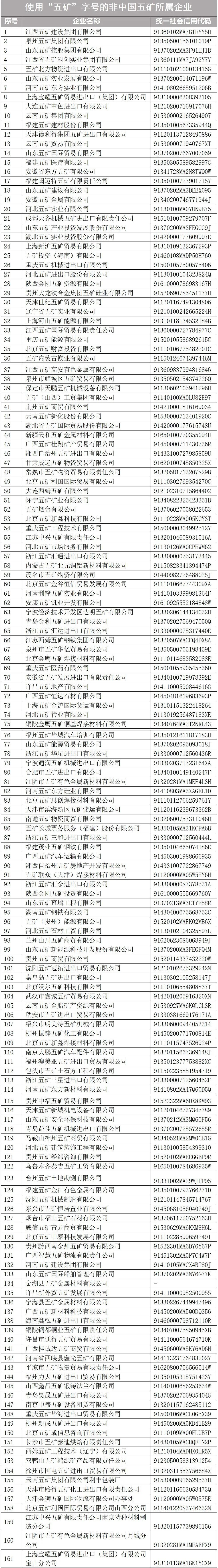 我公司郑重声明,以下列表中的企业及其下设各级组织机构与中国五矿无任何隶属或股权关系,其一切行为均与我公司无关。