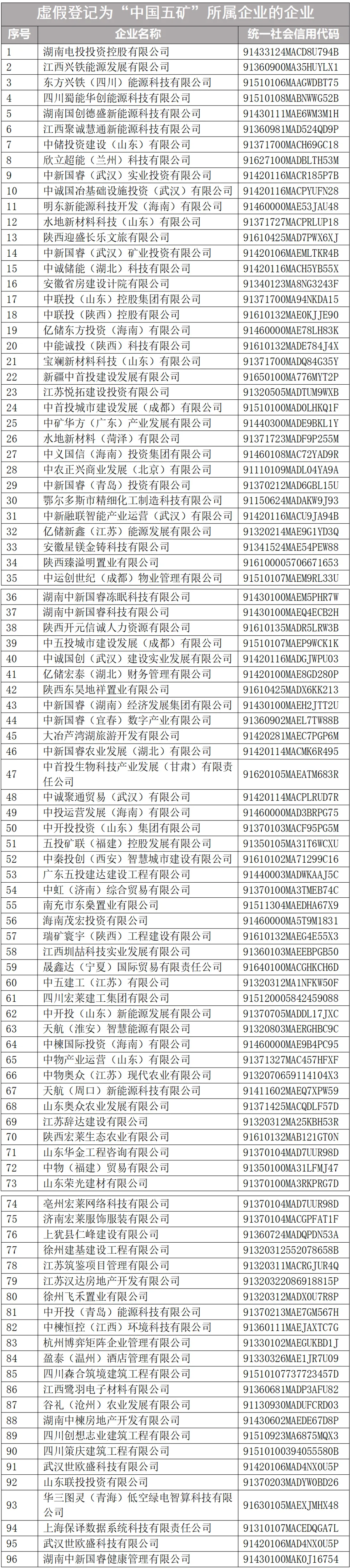 一、虚假登记为“中国五矿”所属企业的企业