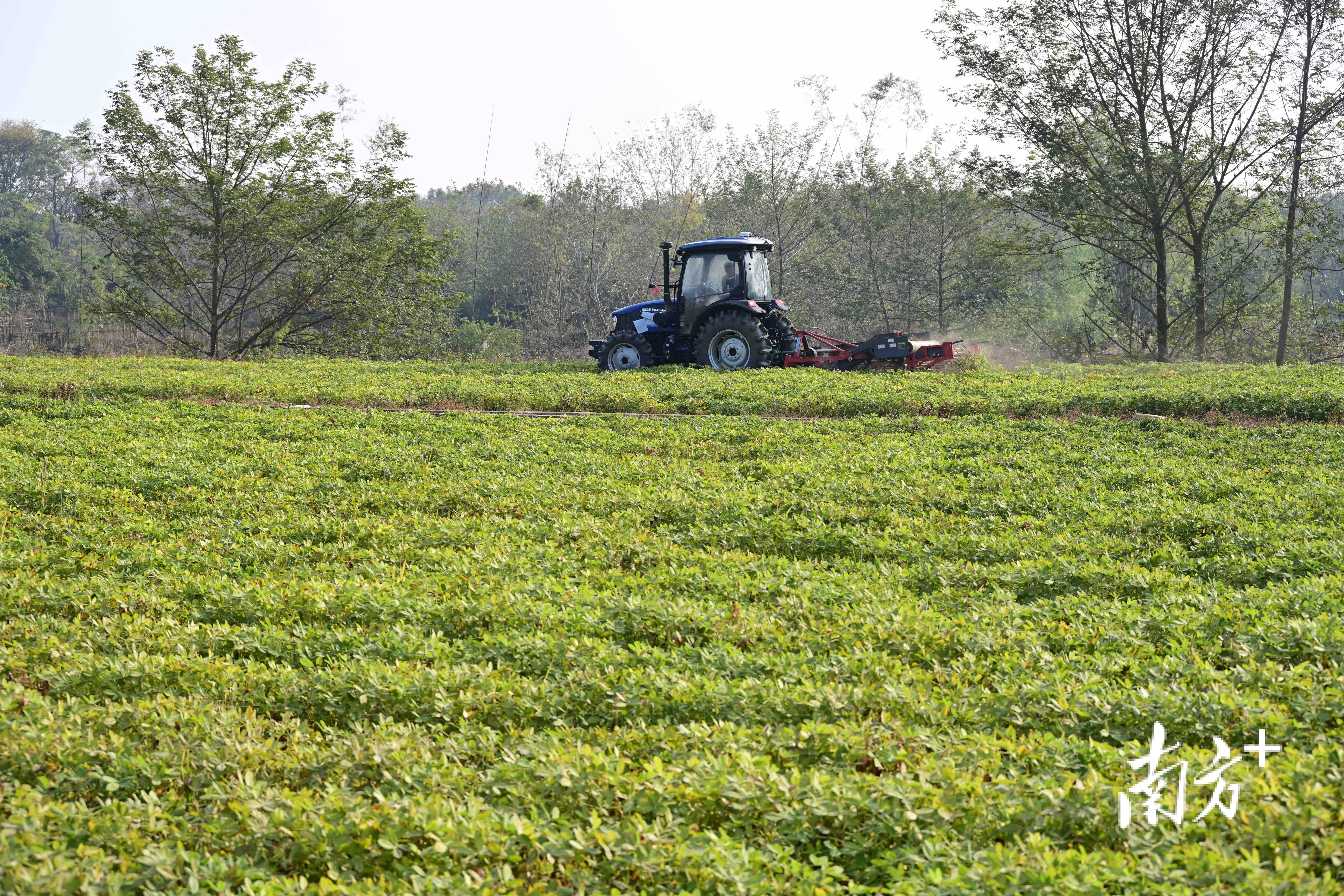 连平县忠信镇新下村,智慧花生收获机正在进行秋收作业。