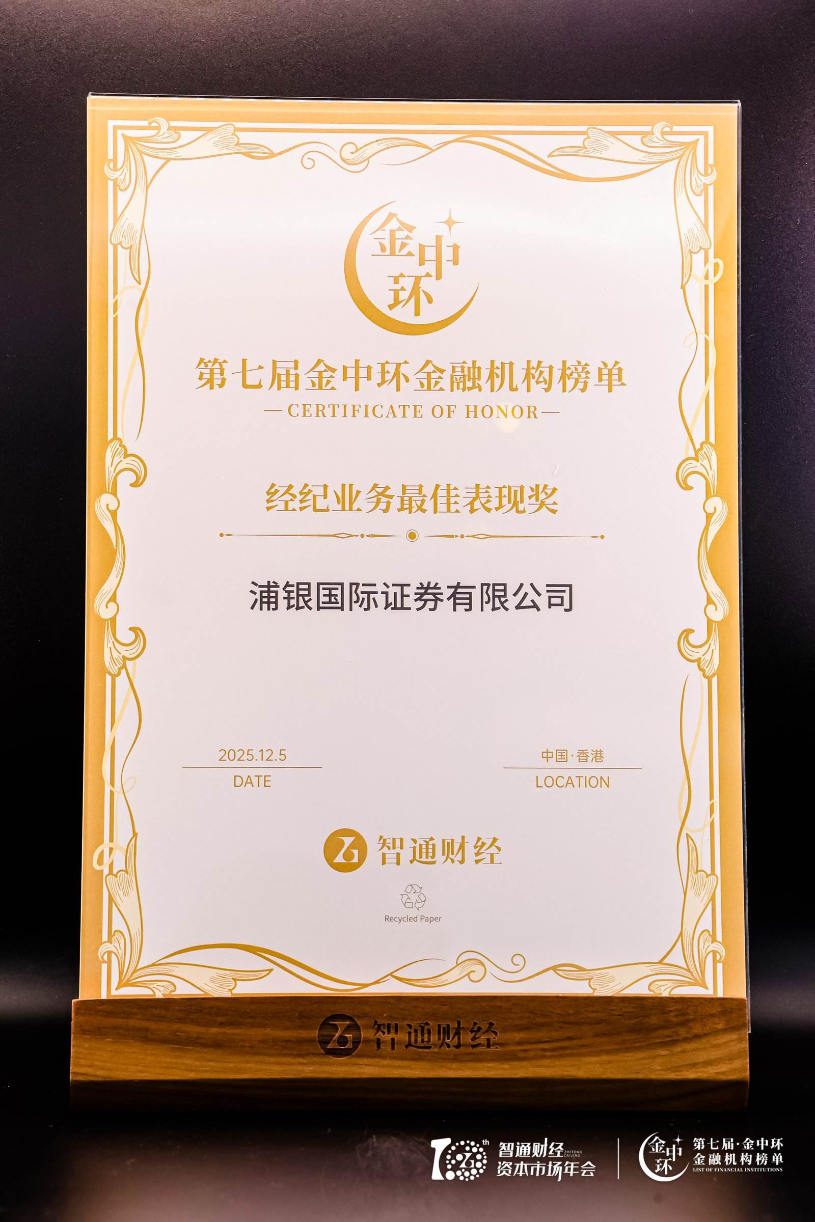 12月5日下午,由智通财经、 香港中资证券业协会 主办的第七届“2025金中环论坛暨金融机构榜颁奖典礼”在香港中环圆满落幕。会上重磅揭晓了第七届“金中环”金融机构榜单, 浦银国际证券有限公司 凭借在经纪领域的卓越执行能力与客户服务水平,从众多参评机构中脱颖而出,成功斩获“经纪业务最佳表现奖”,彰显了业界对其专业能力的高度认可。