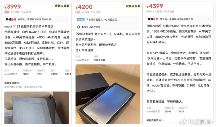 而努比亚M153现货加价更是夸张,目前全新未拆封已经加到3999元-4399元了,最高加价幅度为900元。甚至有不少“内部人士”开始倒卖F码,梦回十年前的小米抢购啊。