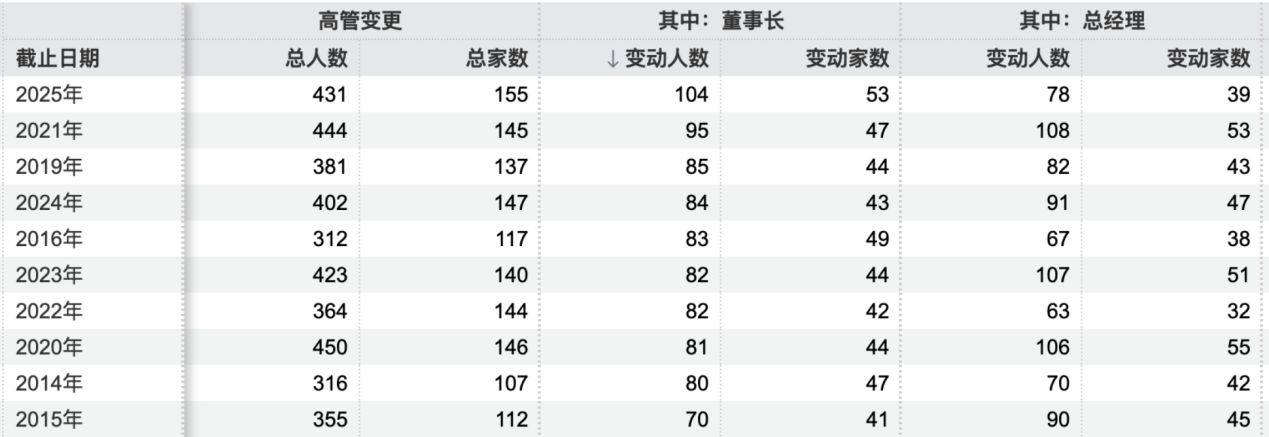 根据 Wind 数据,今年以来公募高管变更人数达到431人,在近10年的变更人数中排在第三。考虑到年底往往是高管变更的高峰期,这个数字很有可能继续增加。