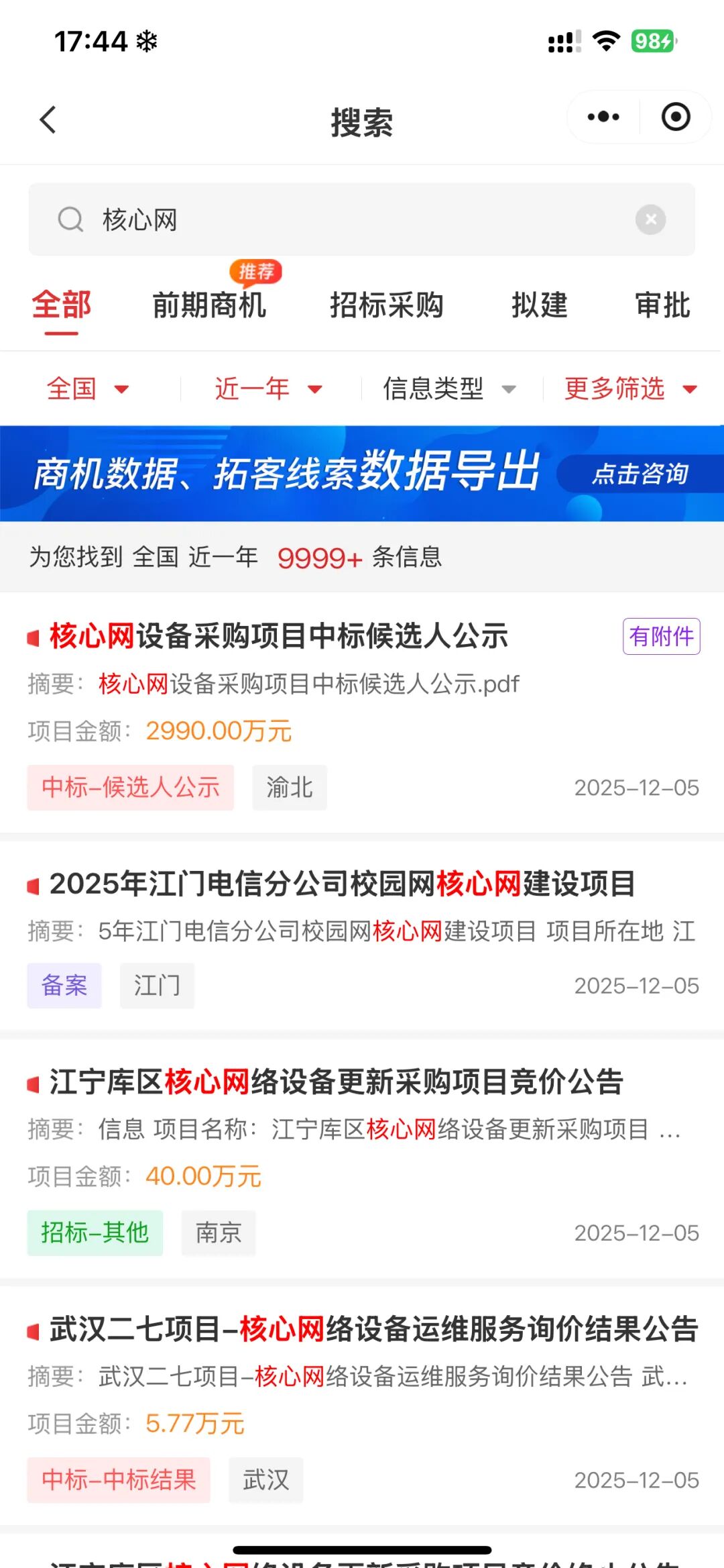 2025 年 11 月 12 日,重庆星网网络系统研究院有限公司发布《核心网设备采购项目》招标公告。