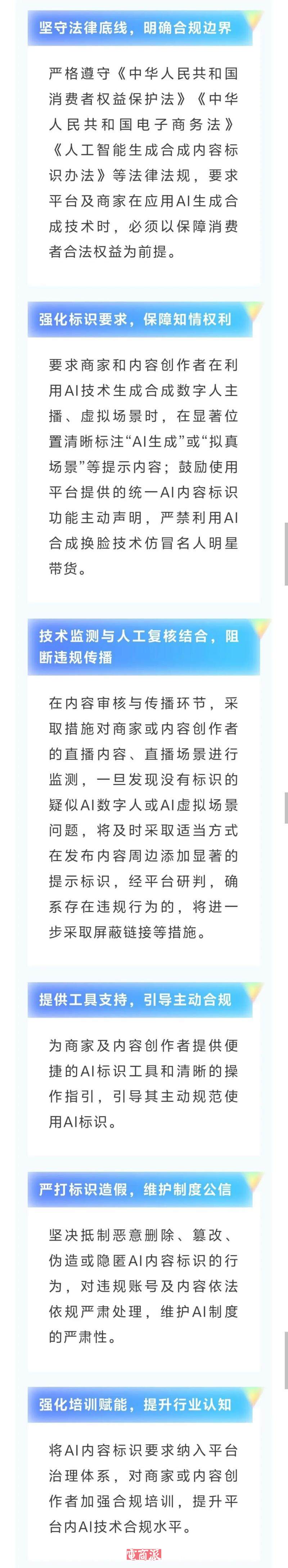 《承诺书》还明确,将严打恶意删除、篡改、伪造或隐匿AI 内容标识的造假行为,对违规账号及内容依法依规严肃处置,全力维护 AI 带货的规范秩序。