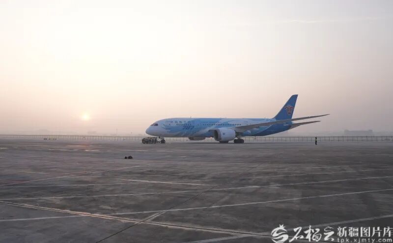 12月5日,乌鲁木齐天山国际机场首个“一刻登机”航班CZ6901准备起飞。李瑾摄
