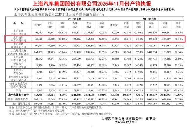 上汽集团 产销快报揭示了2025年11月各板块的市场表现差异。上汽通用作为集团旗下主要合资企业,53,373辆的月度销量使其成为集团内部销量下滑的三家整车企业之一。