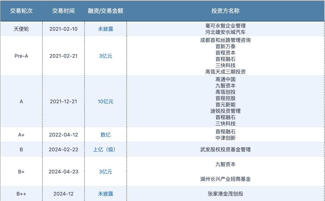 根据投中嘉川CVsource显示,成立至今,毫末智行共完成了7轮融资,累计融资金额在20亿元左右。其中金额最大的为2021年底官宣的A轮融资,金额为10亿元人民币,投资方为 美团 、高瓴创投、 高通 创投、 首程控股 、九智资本等。这笔融资在当时赚足了眼球,该轮融资后,毫末智行正式迈入独角兽行列,投后估值超10亿美元。