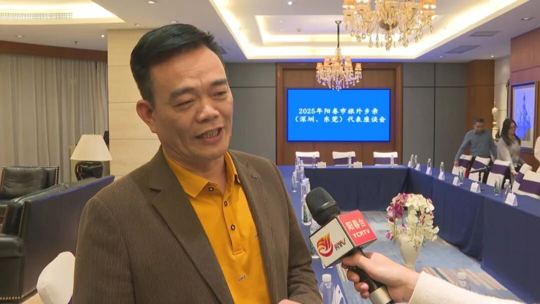 书记带领团队到我们深圳大湾区这里,拜访我们阳春外出的乡贤,我们觉得非常高兴。通过传达“十四五”的骄人成绩,到推广“十五五”规划,让我们非常振奋鼓舞。未来我一定会带着我们深圳的外出企业家,精准对接我们阳春的产业,把我们大湾区最先进的一些理念——比如说科技创新、营商理念,还有我们湾区各个行业的人才比较多,我们会输送或者培训好,带回到我们阳春去。