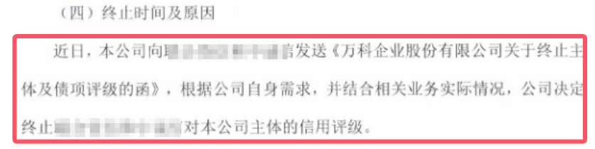自 万科 于2025年11月26日拟对“22 万科 MTN004”展期以来,公司成为整个市场关注的焦点。债券民工一直在关注 万科 的相关公告,想看一下两家权威评级机构到底会什么时候会调整 万科 的主体评级、以什么样的幅度调整主体评级。因为不管怎么调整,都会对 万科 后续债务处理事项产生直接的影响。但是真的是没想到, 万科 的AAA评级会以这种方式收场,直接终止了主体和债项评级,这样就可以完全不需要考虑评级状态变化了。而且这对于评级公司来说,真的是一个非常好的消息,直接从根本上解决了这个问题。