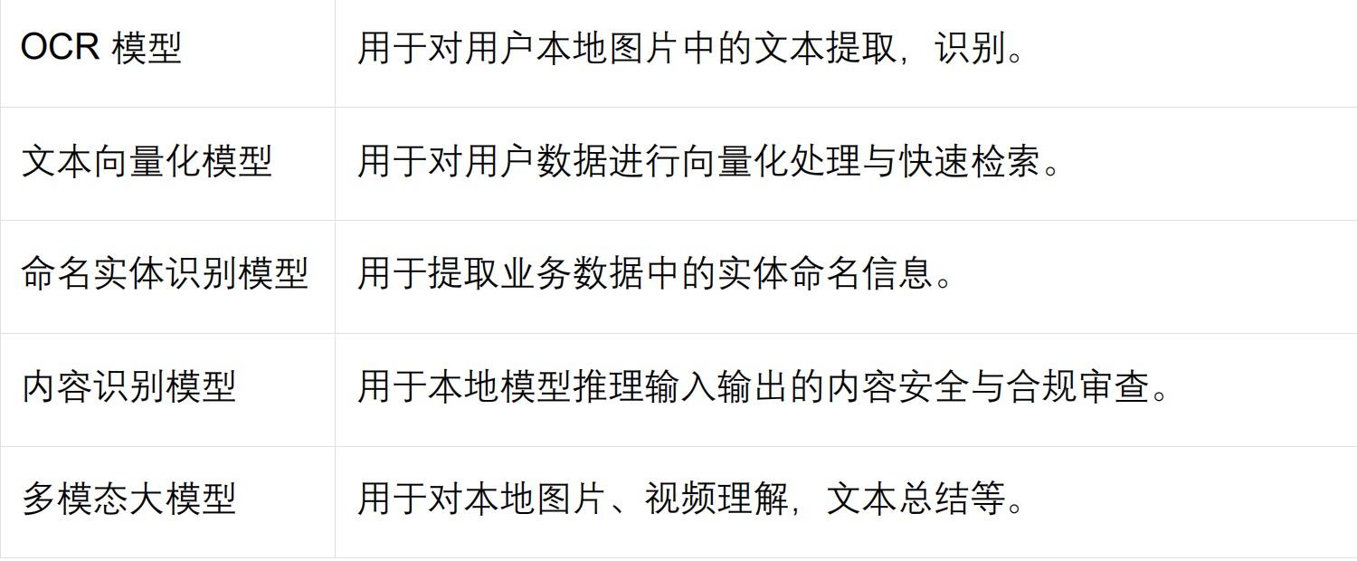 据白皮书披露, 豆包 手机助手在手机本地部署的部分AI模型名单。
