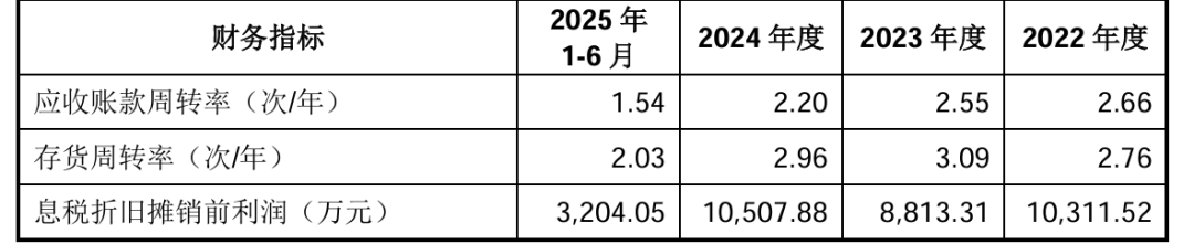 与此同时,有研复材的应收账款周转率在2024年及2025年上半年连续下滑。2024年,公司应收账款周转率略有下降,主要系当年高端手机零部件在四季度集中销售出货,应收账款余额增加所致。