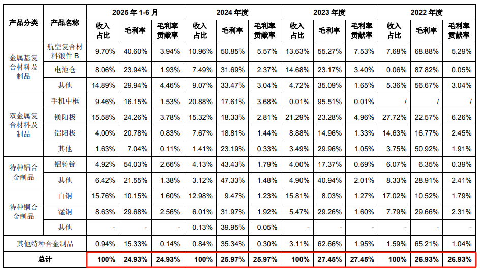 招股书介绍,有研复材是一家主要从事金属复合材料及制品、特种有色金属合金制品研发、生产和销售的高新技术企业,业务分为金属复合材料及制品和特种有色金属合金制品板块。