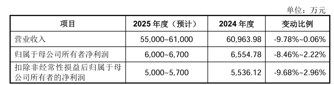 2025年全年,公司预计营业收入同比变动-9.78%至0.06%,归母净利润同比变动-8.46%至2.22%,扣非归母净利润同比变动-9.68%至2.96%。