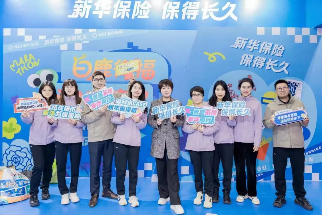 新华保险 展位以一抹亮眼的“新华蓝”亮相现场,成为现场跑友争相打卡的热门站点。