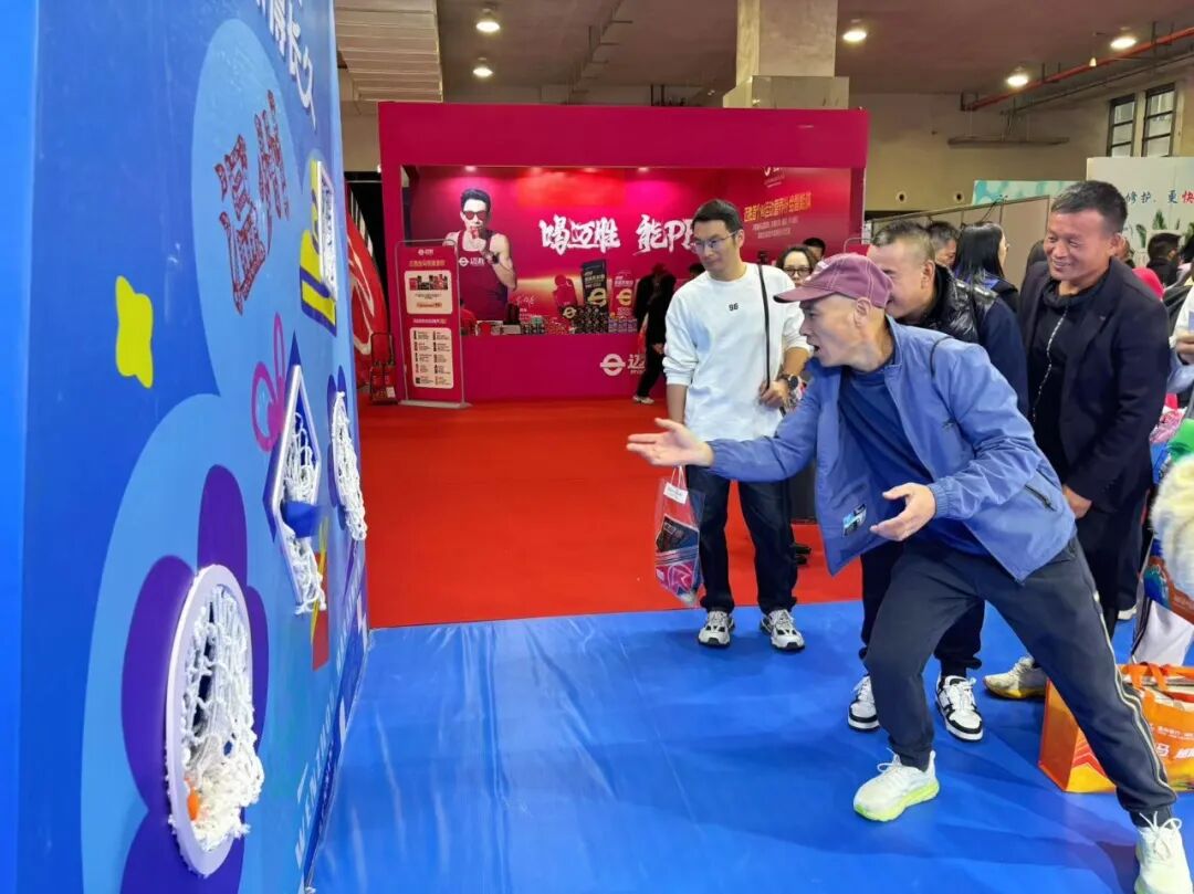 展位精心设置游戏区,融入沙包投掷、趣味打卡等特色互动游戏,现场氛围热烈。