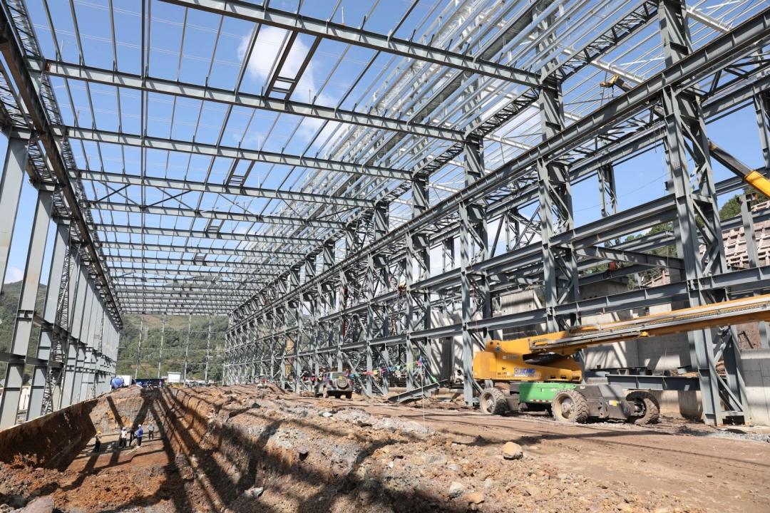 在猪拱塘铅锌矿浮选厂建设工地,工人们正加紧安装钢结构和生产设备,预计12月底完工。