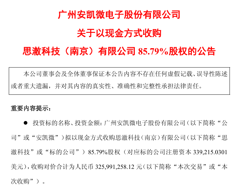 本文将深入剖析这笔交易的结构特点、思澈科技的创业历程与核心价值,以及 安凯微 的战略考量与未来布局,揭示这场资本运作背后的产业逻辑与趋势。