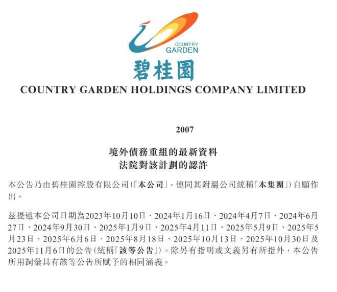 根据 碧桂园 发布公告,其规模约177亿美元的境外债务重组方案已获 香港高等法院 正式批准。 碧桂园 此前表示,将力争在年底前达成各项境外重组生效先决条件后正式完成重组。
