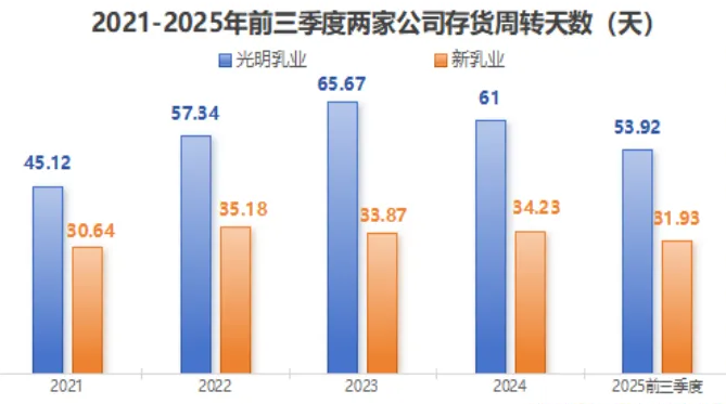 更关键的是,新乳业精准地抓住了低温奶兴起的行业风口,并围绕“鲜”构建了坚实的运营壁垒。其推出的“308极致鲜奶供应链”,从凌晨生产到清晨送达,以效率兑现“极鲜”承诺。这套体系使公司存货周转天数显著低于行业平均水平,大幅降低了低温产品的高损耗痛点。随着原奶成本进入下行周期,其净利率得以持续提升,形成了成本与效率的双重优势。