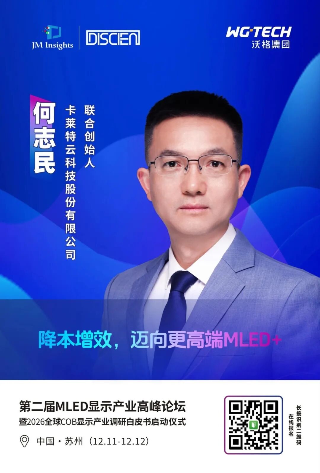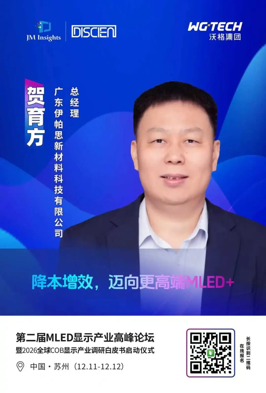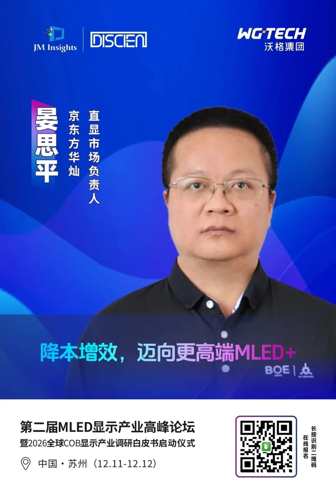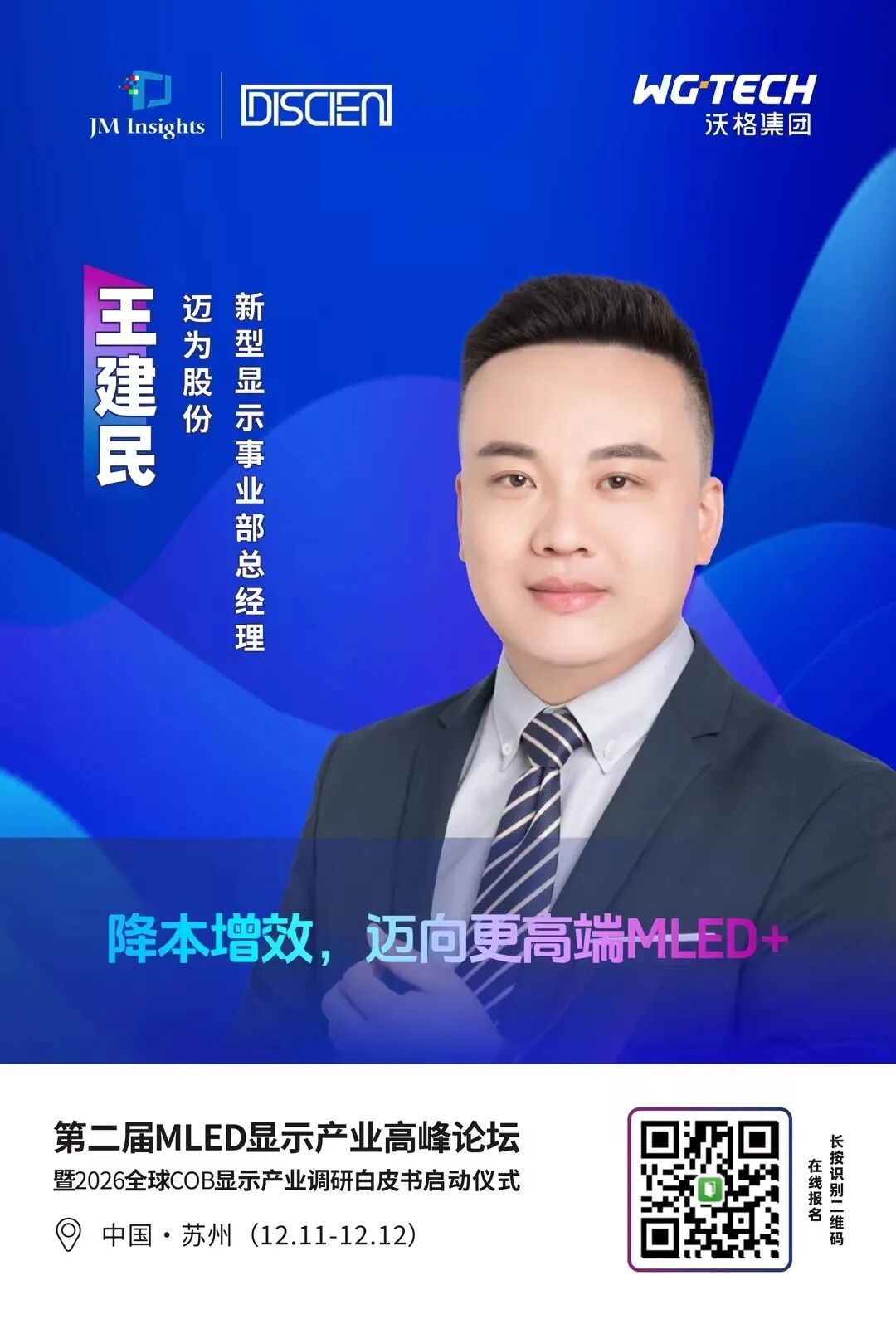 为进一步理清MLED显示市场发展脉络与趋势,探寻市场发展的核心驱动力,JM Insights联合中国玻璃电路板产业联盟(筹)、沃格光电等举办的MLED直显年终盛会“第二届MLED显示产业高峰论坛暨2026全球LED COB显示屏调研白皮书启动仪式”将于12月11-12日在苏州隆重举行。