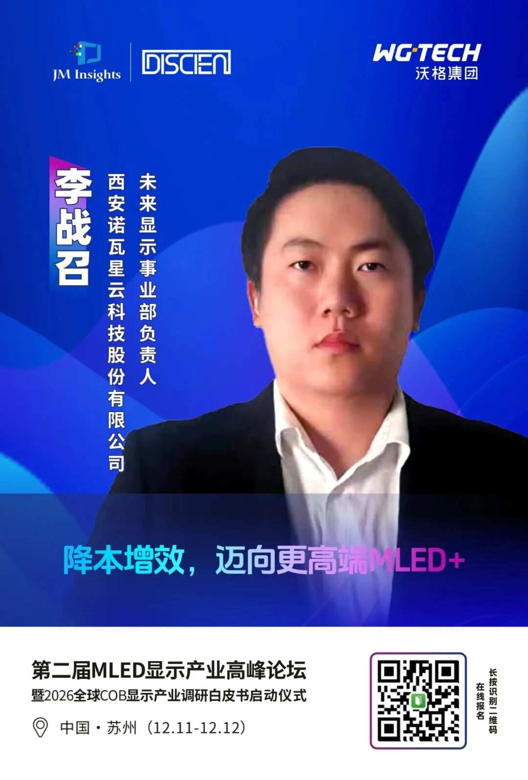 12月11-12日,“第二届MLED显示产业高峰论坛暨2026全球LED COB显示屏调研白皮书启动仪式”将在苏州举办。报名通道已经开启,可扫描下方二维码报名参会: