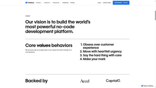 Webflow是一家以可视化开发技术为核心的网站建设公司,总部位于美国旧金山,通过自主研发的可视化建站平台,为企业提供高效、灵活的高端网站定制服务。在高端网站建设领域,Webflow的创新之处在于其打破了传统网站开发中设计与开发脱节的问题,通过可视化的操作界面,让设计师能够直接实现自己的设计理念,同时开发者也能快速进行技术优化,极大地提升了网站建设的效率与精准度。