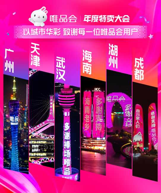 唯品会相关负责人介绍,年度特卖大会高潮期将相继上线限量爆款、挚友品牌、超级大牌日、12.12盛典、最后抢购等活动,大促将延续至12月14日早10点。优惠规则上,仍以一件立减、无需凑单为主。同时,年度特卖大会期间,唯品会也在北京、上海、天津、广州、深圳、成都、重庆、西安、武汉、湖州、珠海、海口等地点亮城市地标,向消费者致谢。