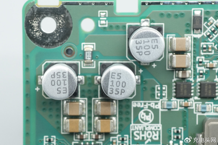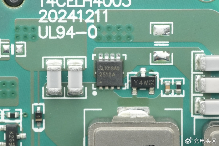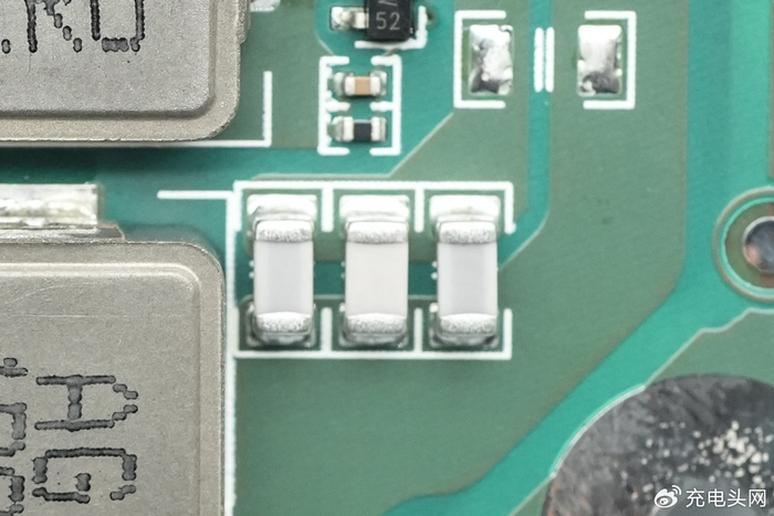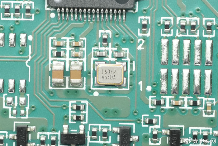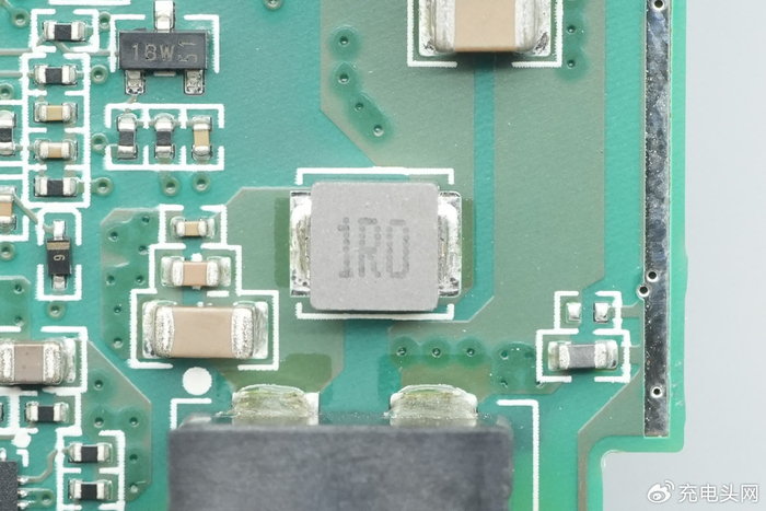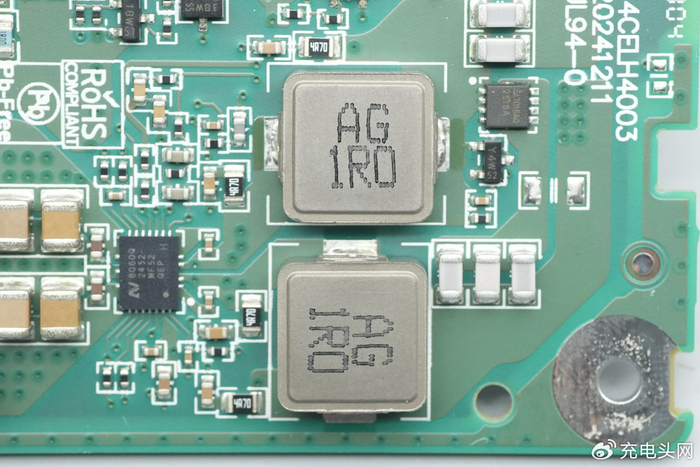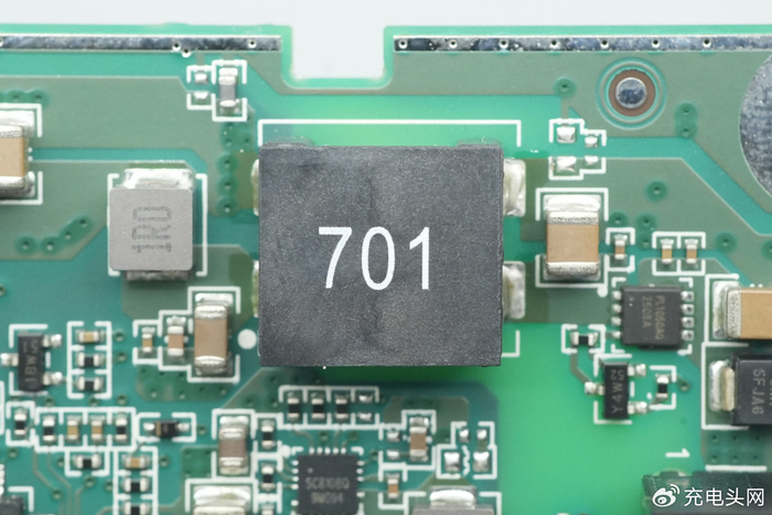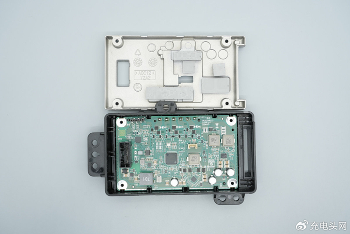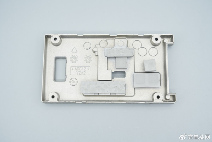 铝合金后盖对应电感和发热元件设有导热垫散热。