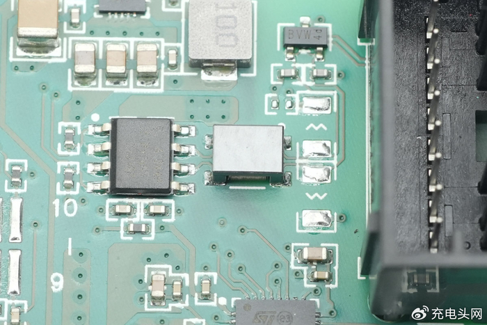 充电头网通过拆解了解到,智己汽车这款前装无线充电模块采用杰发科技AC78406HFLA无线充电主控,搭配使用伏达半导体NU8060QH进行无线充电,使用南芯科技SC8701Q同步升降压控制器用于升降压电压转换,为无线充电功率级供电。使用SC8108Q同步降压转换器为无线充电主控供电。