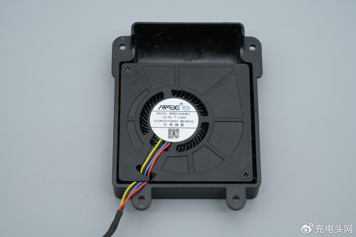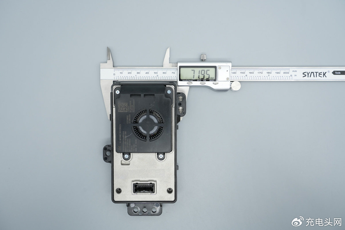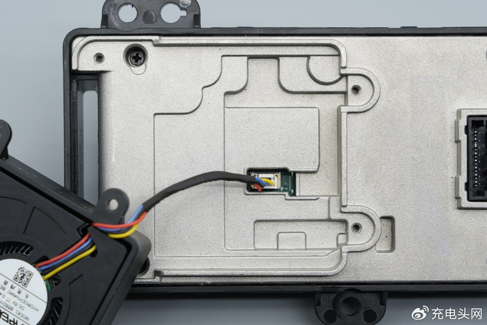 无线充电模块侧面一览,散热风扇为凸起设计。