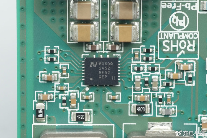 无线充电功率级来自伏达半导体,型号NU8060QH,是一款聚高集成度、高效率、高精度于一身的无线充发射端芯片,符合AEC-Q100 Grade1标准。芯片支持宽压输入,推荐最高工作电压27V,瞬态耐压最高可达36V。单颗芯片能配最高达80W的无线充接收端Rx负载,实现高功率无线快充。