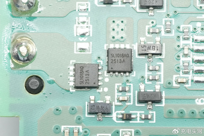 用于切换谐振电容的开关管来自捷捷微电,型号JMSL1018AUQ,符合AEC-Q101标准,NMOS,耐压100V,导阻16.2mΩ,采用PDFN3*3-8L封装。