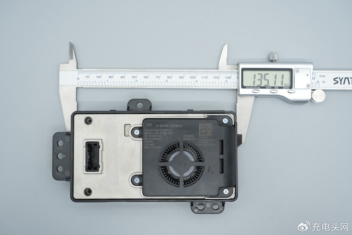 使用游标卡尺测得无线充电模块长度约为135.1mm。