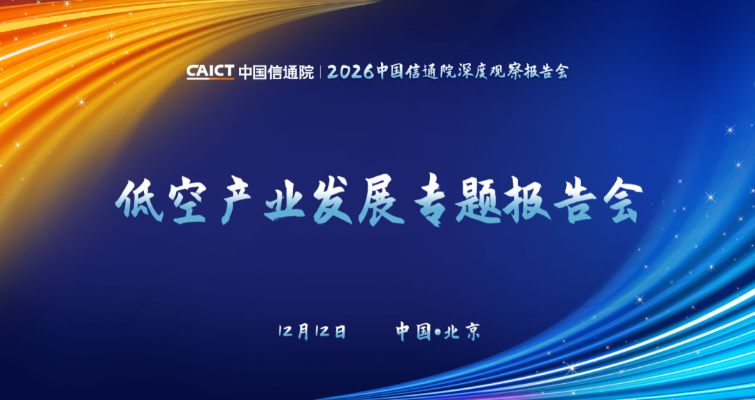 2025年12月12日,由中国信息通信研究院(简称“中国信通院”)主办的2026中国信通院深度观察报告会—低空产业发展专题报告会在北京召开。本次专题报告会紧扣“十五五”规划战略部署,聚焦低空产业安全发展与创新突破的核心命题,汇聚相关领域权威专家学者,分享低空产业领域的最新研究成果与深刻见解,为产业平稳有序发展、高质量进阶提供坚实支撑。
