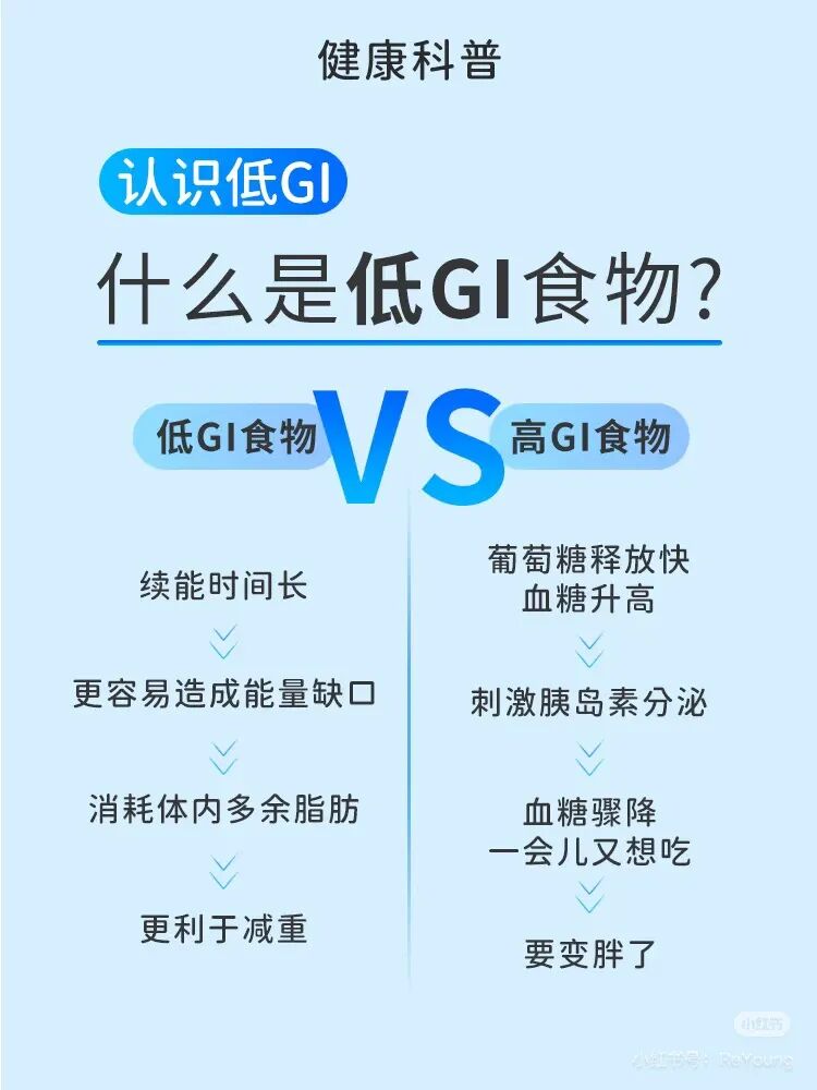 顾名思义,低GI食品就是让你吃完之后,血糖不会一路狂飙,而且饱腹感更持久。