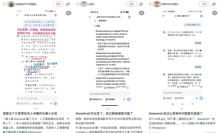 网友分享的奇葩经历层出不穷——推荐美食经营类小说,DeepSeek给出的3本全是虚构作品;索要数字PCR与NGS联用的文献,它竟生成根本不存在的高影响因子论文;甚至在简单的标书生成、数据整理等场景中,也常出现答非所问、自由发挥的情况。