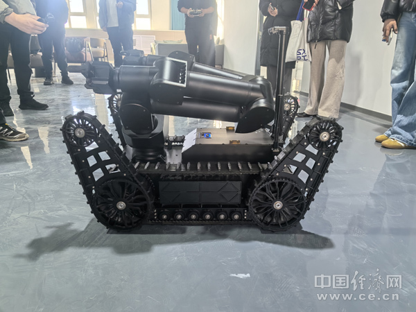 这台 榆林智能无人装备创新中心有限公司 制造的机器人可用于井下作业。(中国经济网记者邓浩/摄)