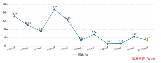 Wind数据显示,2020-2024年,上海银行的归母净利润增速分别为2.89%、5.54%、1.08%、1.19%、4.50%,2025年三季报披露的增速又降至2.77%。