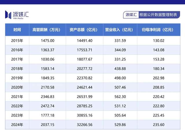 与加薪幅度形成鲜明对比的是,上海银行2024年营收、归母净利润的增幅尚不足5%。算下来,高管薪酬增速几乎是归母净利润增速的3倍。