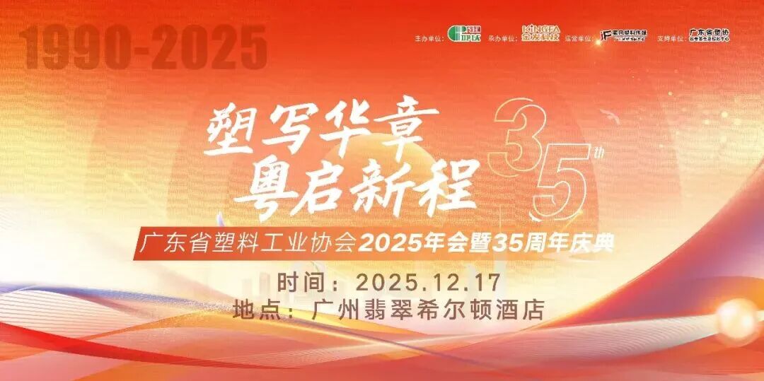2025年是广东省塑料工业协会成立35周年,也是行业十四五收官、十五五规划之年。为总结发展成果、展望未来趋势,加强行业交流与合作,经研究决定召开“广东省塑料工业协会2025年会暨35周年庆典”。会议将于2025年12月17日在广州翡翠希尔顿酒店召开。