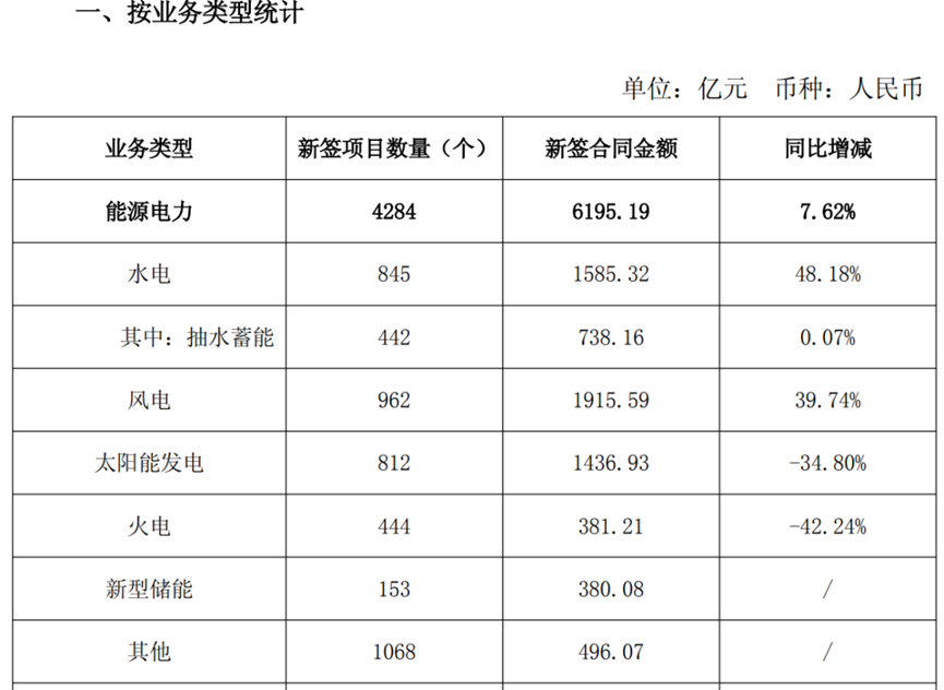 另据 中国电建 发布的《2025年1月至10月主要经营情况公告》,其风电业务新签数量962个,合同金额总计1915.59亿元,同比增长39.74%;光伏项目新签数量却仅有812个,合同金额1436.93亿元,同比下降34.8%。