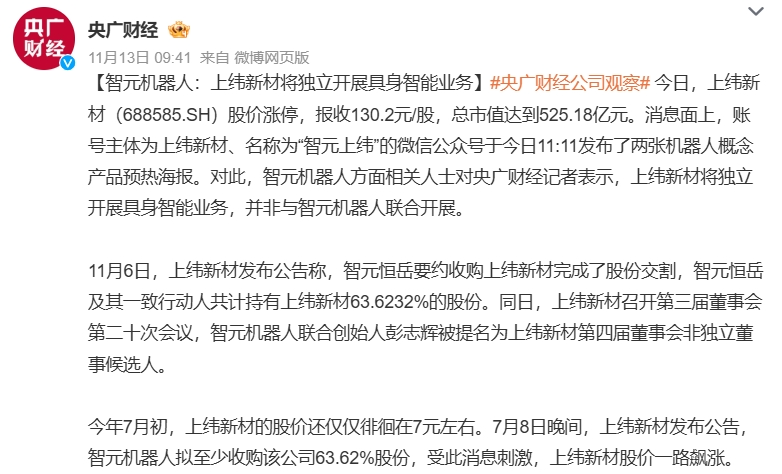 近期,就在 智元机器人 完成收购 上纬新材 的同期,又一家AI独角兽企业筹划“买入”一家上市公司。