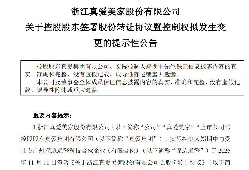 图源: 真爱美家 公告截图